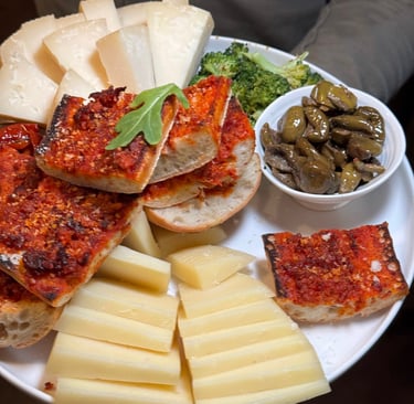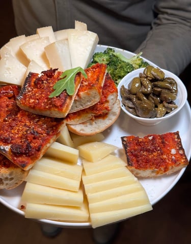 Lo chef di casa, Italo/spagnolo/canadese ama usare l’olio di Cleto, tra i migliori in Calabria, la Nduja, le olive ed il peperoncino, come si suol dire é “Spicy”.