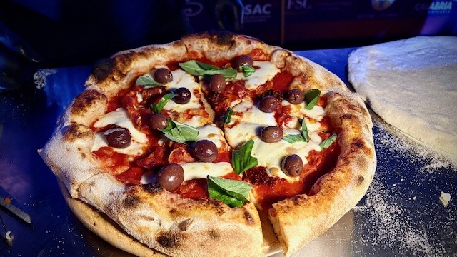 Le sue proposte hanno conquistato i palati dei presenti: pizza Calabrese con pomodoro dell’Azienda Migliarese, ‘nduja di Spilinga, spianata piccante, fiordilatte di Chiaravalle e olive alla monacale; la pizza con patate viola di Gasperina, guanciale di suino nero dell’Azienda Bruno Piccolo e crema al Parmigiano Reggiano; la pizza dalla base bianca con fiordilatte, mortadella e zeste di bergamotto.