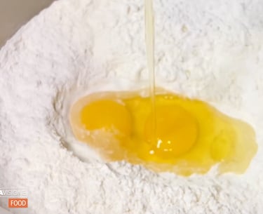 Versiamo lo strutto sciolto e impastiamo energicamente. Appena il nostro impasto inizia a prendere forma ci spostiamo sul tavolo da lavoro e continueremo a lavorarlo finché non risulterà liscio, morbido ed elastico.