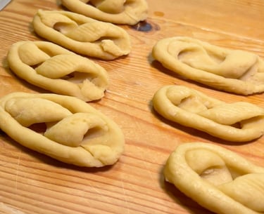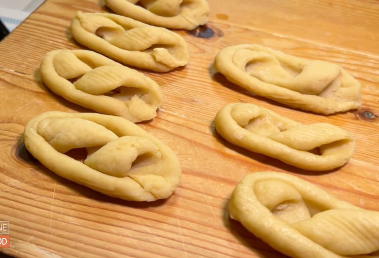 Le tradizioni della nonna prevendono un attrezzo scientifico per dare forma alle nostre scaliddre. Un bastoncino di legno, ovvero il manico di un mestolo.